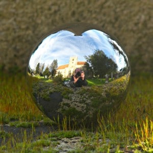 For an image using the chrome ball I set the ball, without a stand, on the top step of the War Memorial which is located half way up the path leading to the south door of the church. The final image was cropped to produce a square picture and the eventual image was enhanced by the moss on the stone.